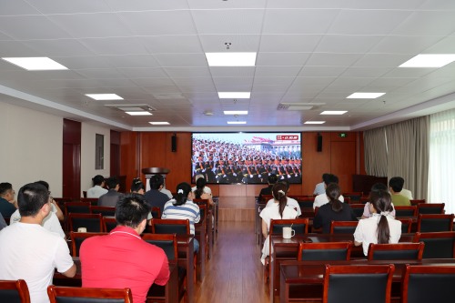 纪念大会上,习近平总书记在天安门城楼上发表重要讲话,大家认真聆听,深受激励。阅兵过程中,45个方阵口号铿锵有力,队列整齐划一,气势如虹;新型国产现役主战装备依次亮相,彰显大国实力;受阅官兵们斗志昂扬、神情坚毅,尽显新时代人民军队风采。观看过程中,在场党员和职工不时发出阵阵赞叹,为祖国的繁荣昌盛和强大的军事实力而深感自豪。